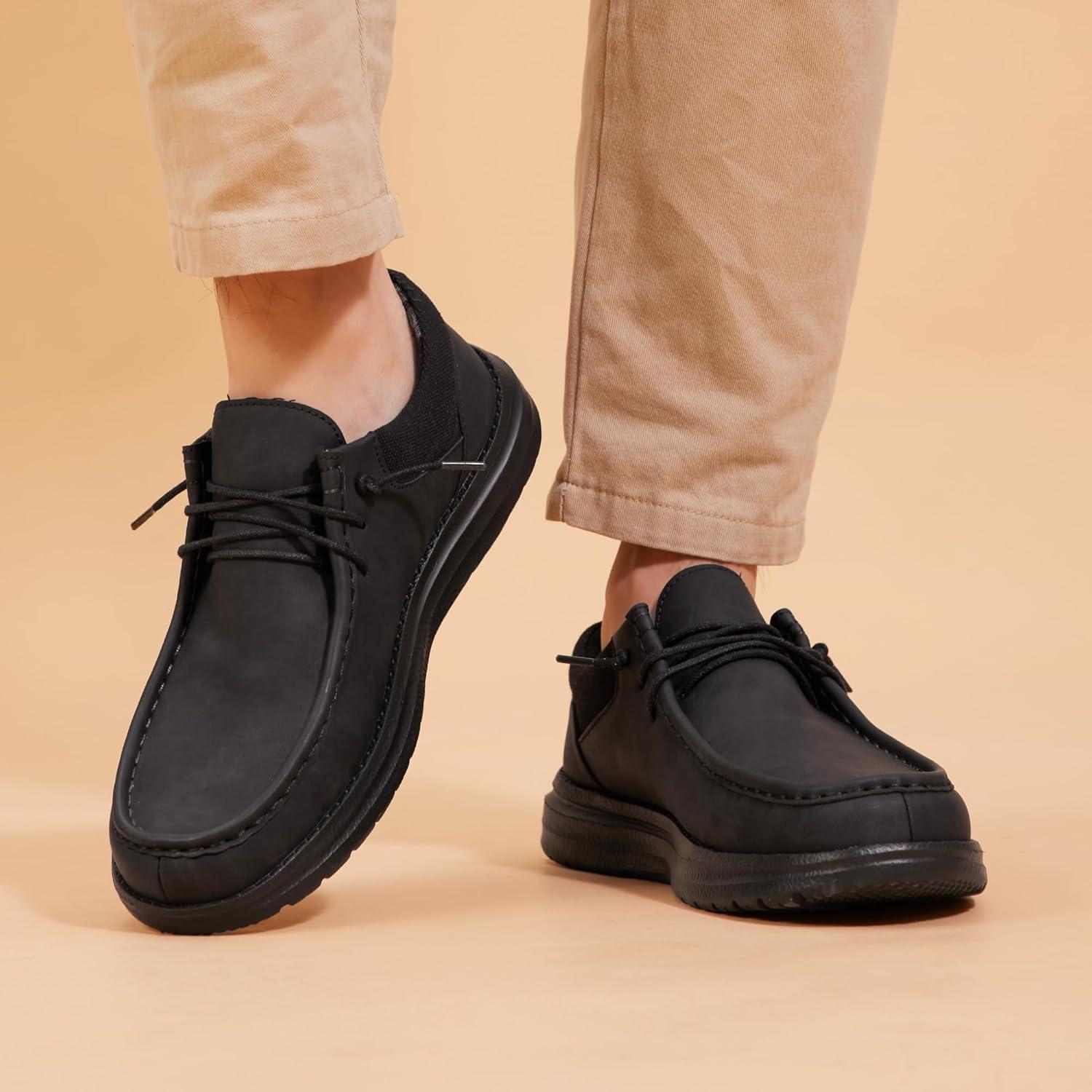 Mens Wide Shoes Width Toe Box Slip-on Loafers Casual Walking Shoes for Men(Black)
