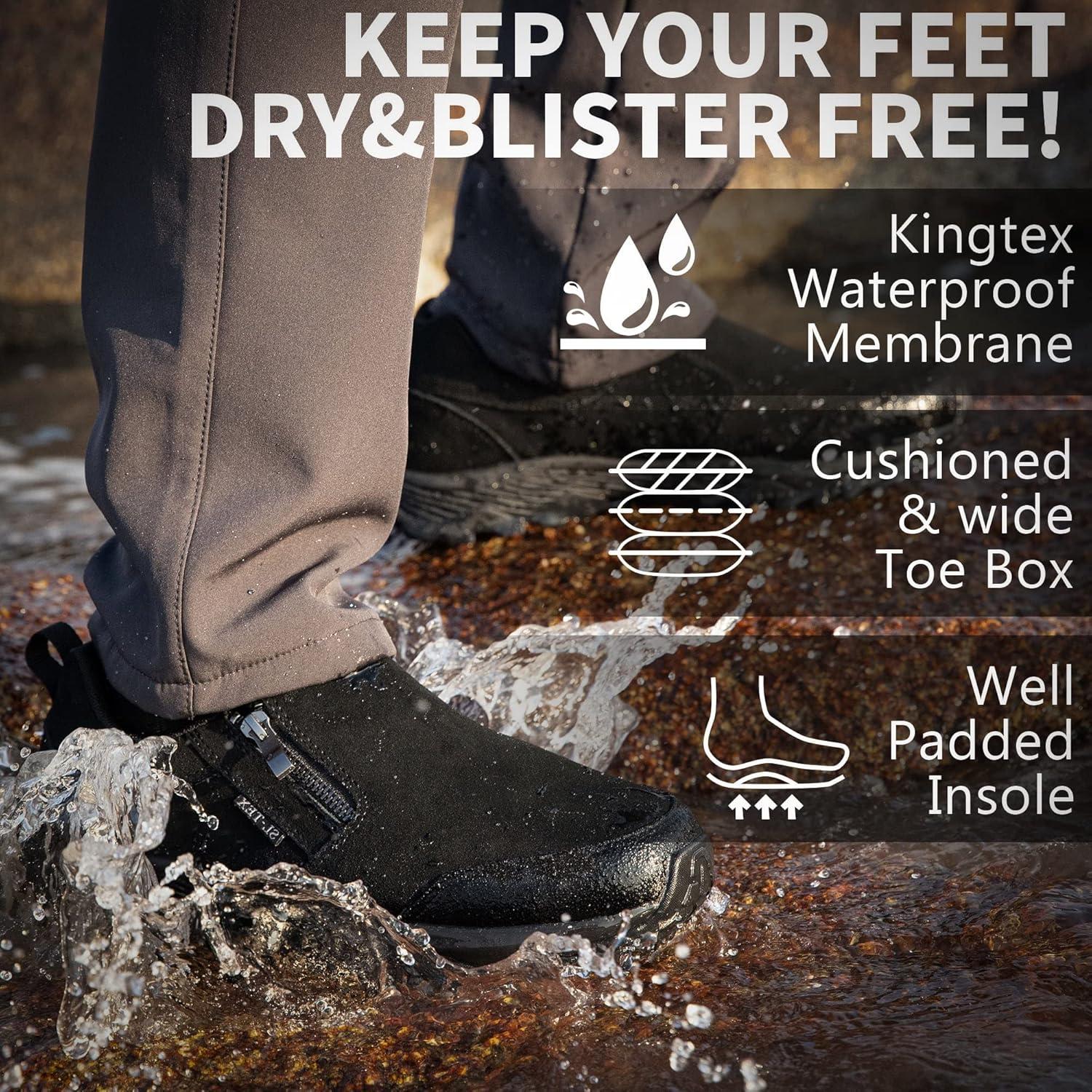 SHULOOK Men’s Waterproof Slip On Hiking Shoes Lightweight Zipper Loafers Comfort Non-Slip Outdoor Shoe