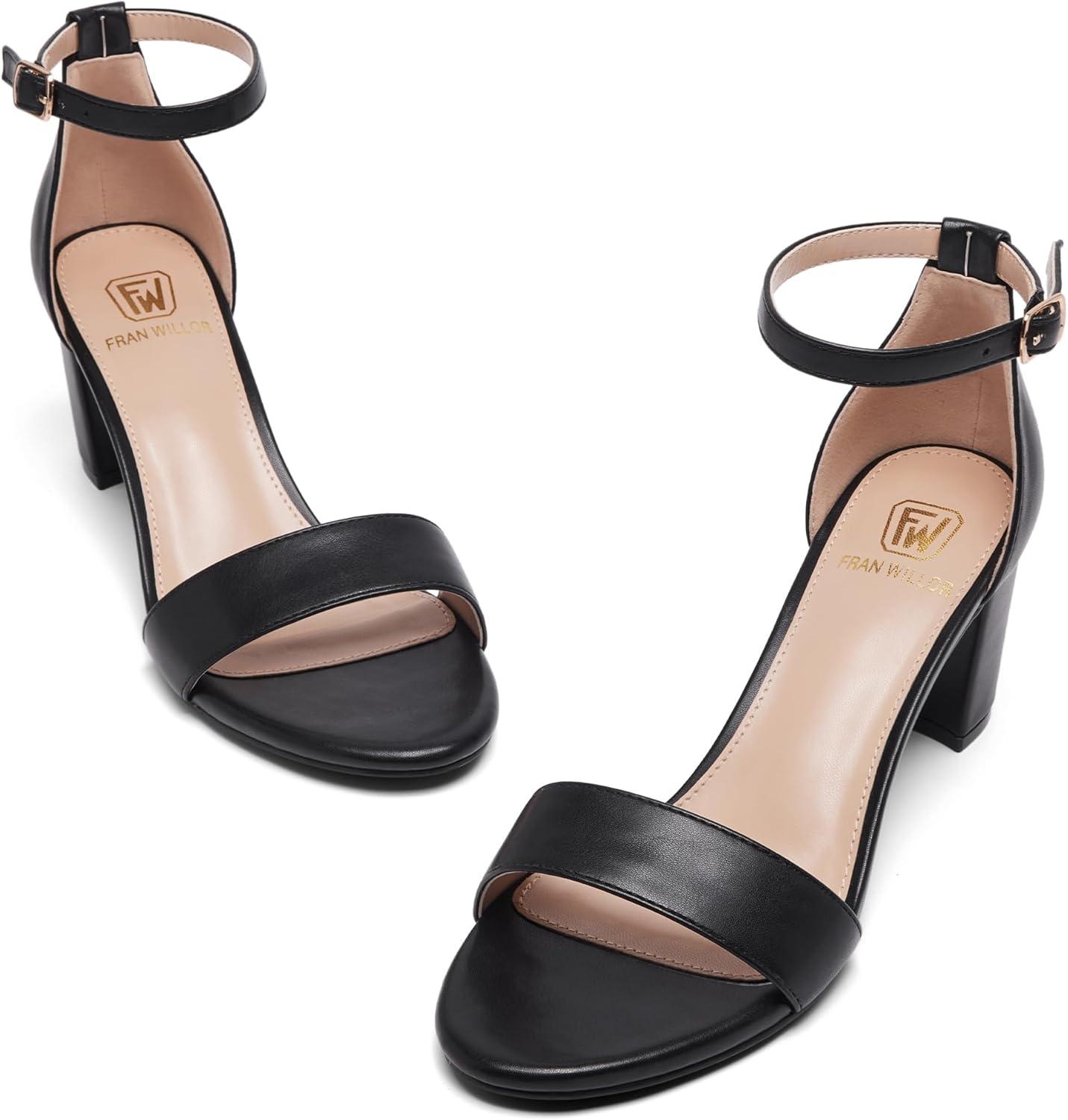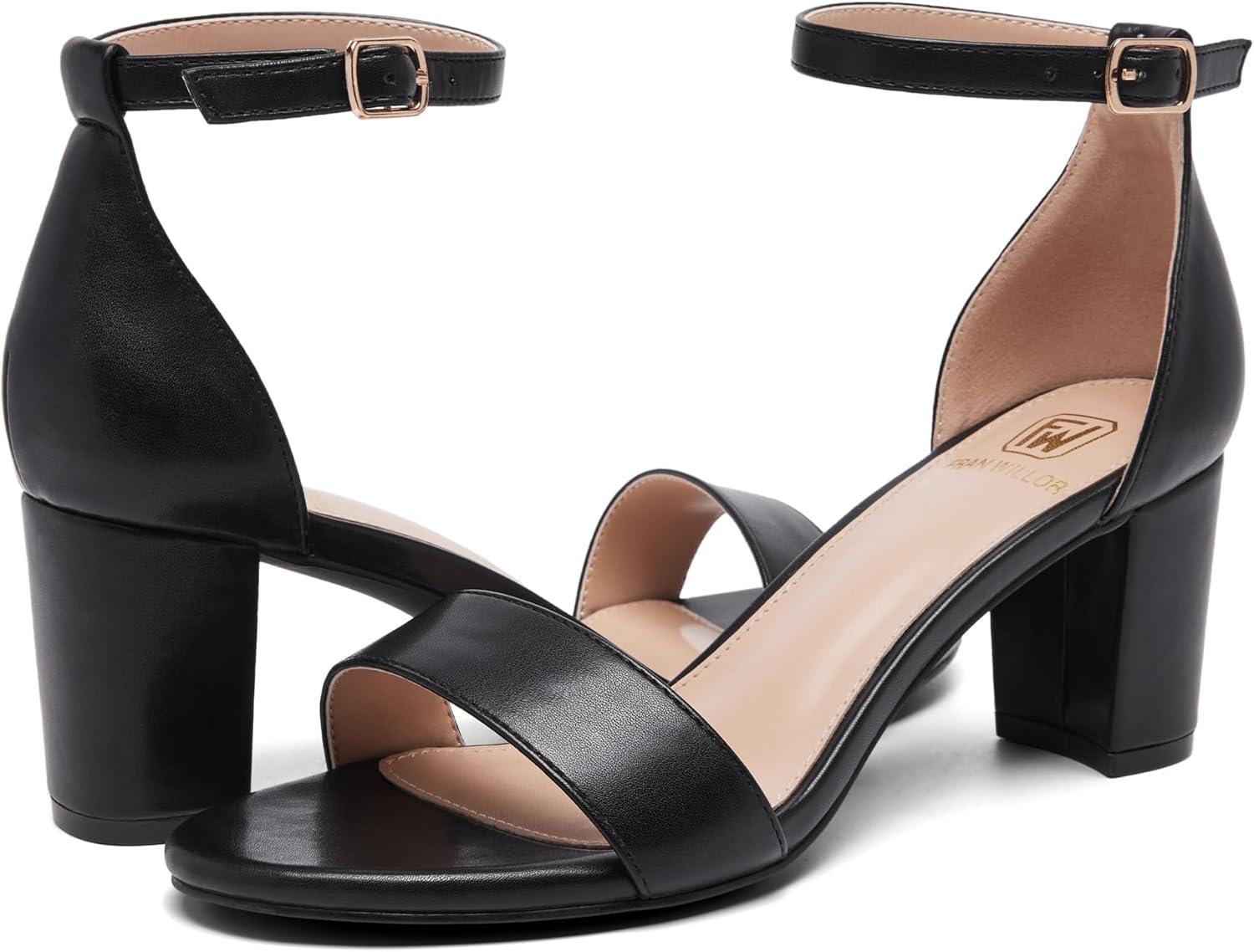 Women Open Toe Low Chunky Short Heels Ankle Strap Block Heel Sandals Party Dress Wedding Pump Shoes(Black/Pu)