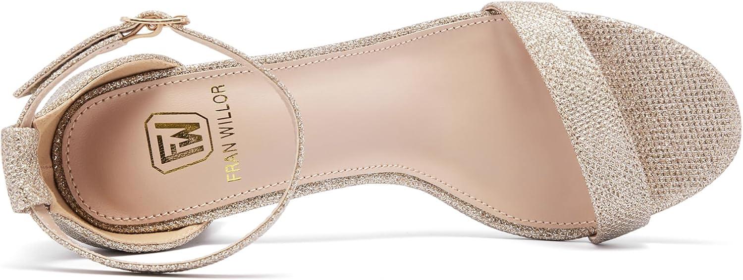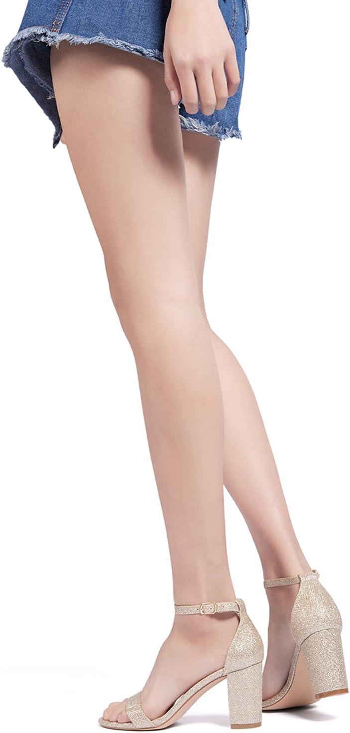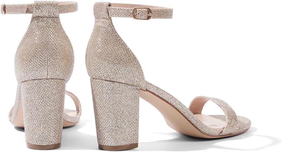 Women Open Toe Low Chunky Short Heels Ankle Strap Block Heel Sandals Party Dress Wedding Pump Shoes(Gold/Glitter)