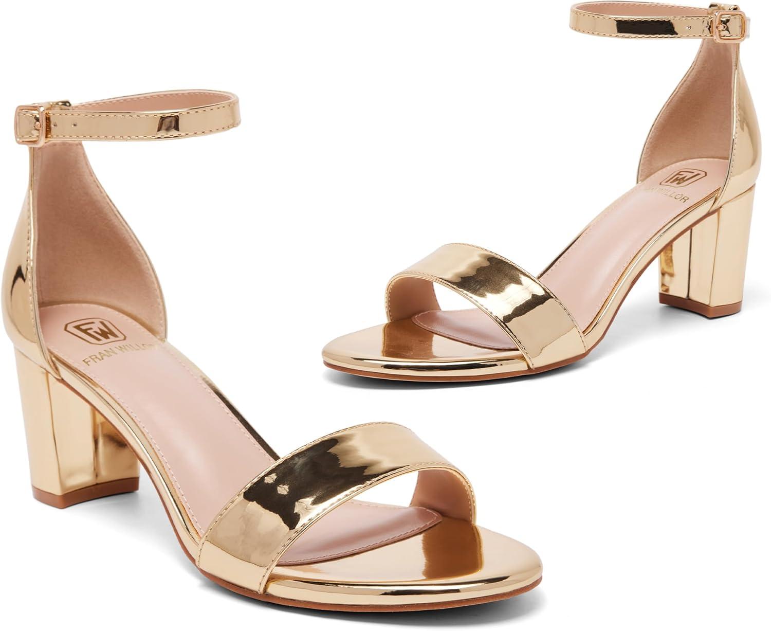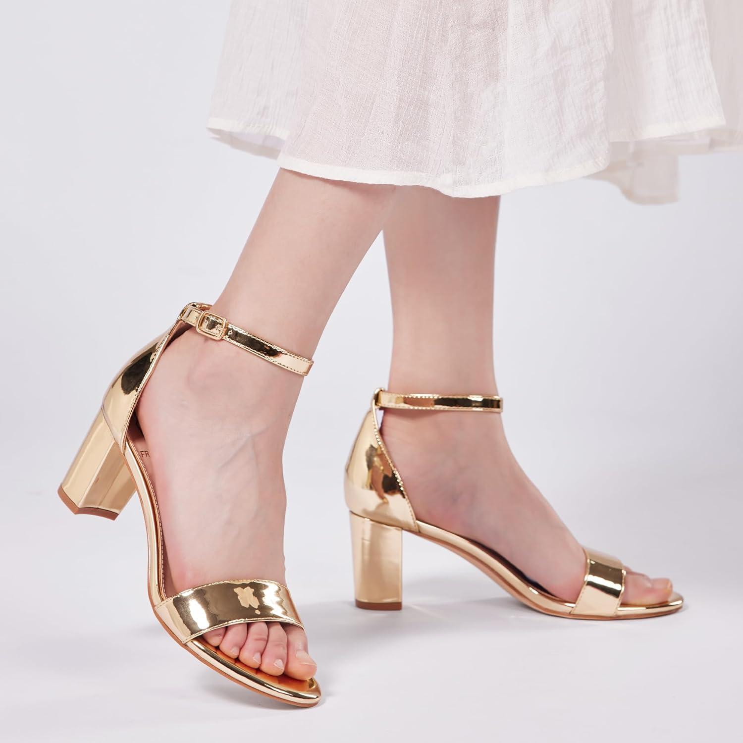 Save big on Women Open Toe Low Chunky Short Heels Ankle Strap Block Heel Sandals Party Dress Wedding Pump Shoes(Gold) during our summer blowout sale. Limited quantities available.