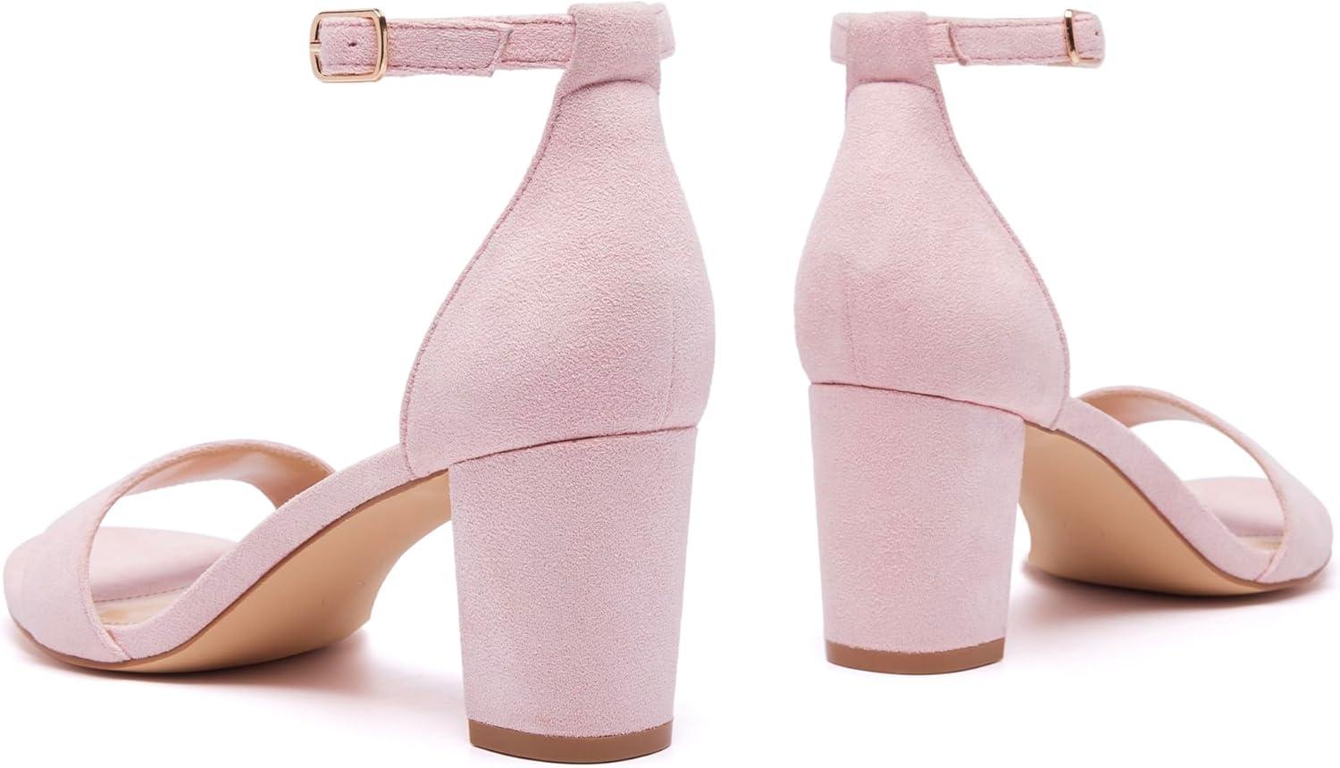 Women Open Toe Low Chunky Short Heels Ankle Strap Block Heel Sandals Party Dress Wedding Pump Shoes(Pink)