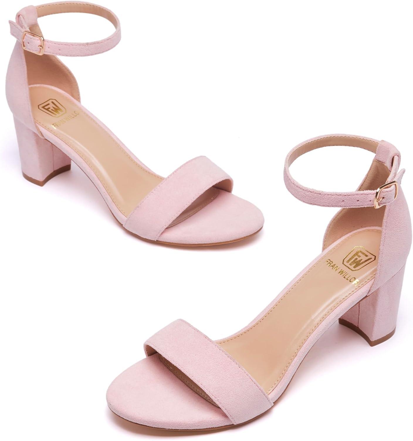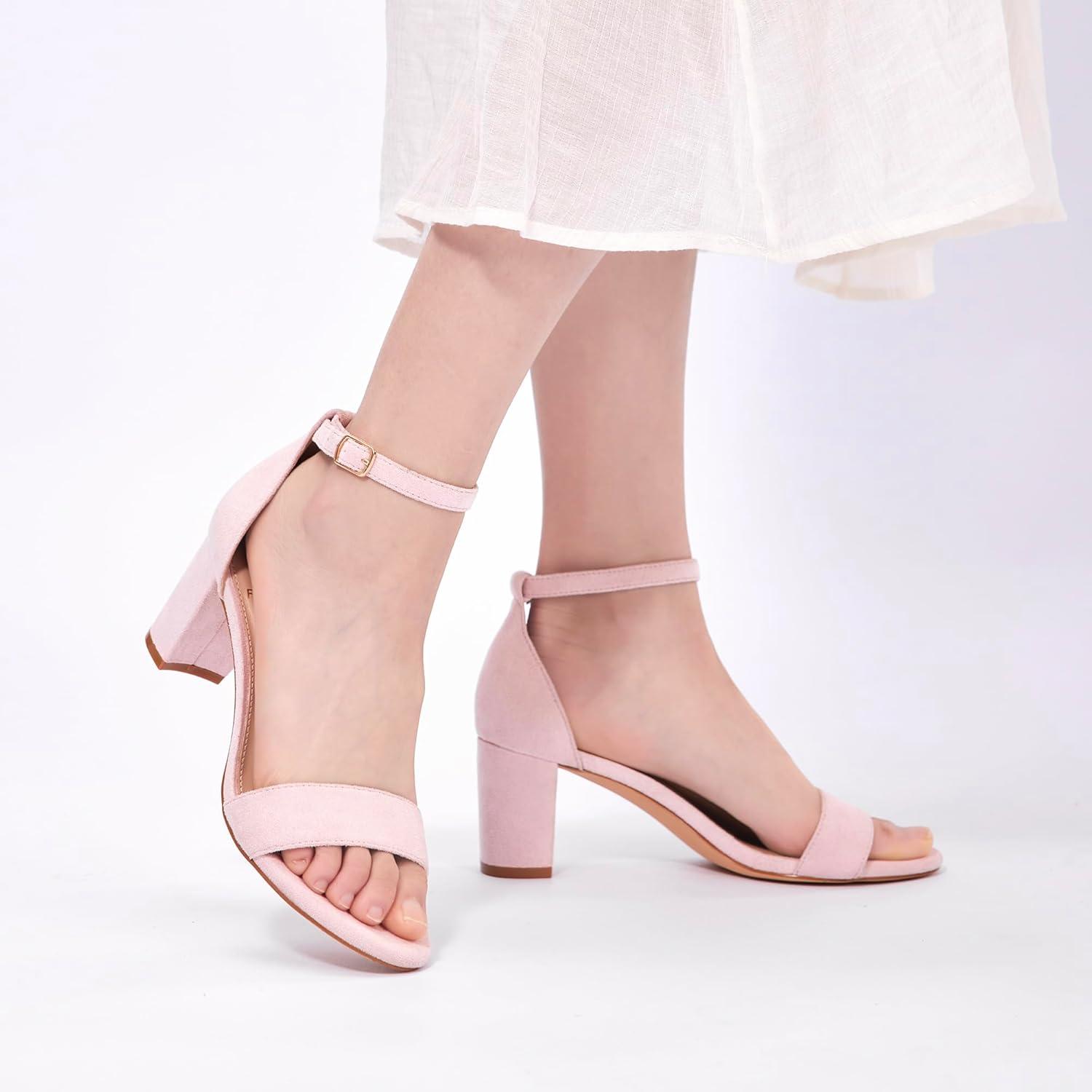 Get more for your money with our exclusive bundle deals on Women Open Toe Low Chunky Short Heels Ankle Strap Block Heel Sandals Party Dress Wedding Pump Shoes(Pink) and accessories.
