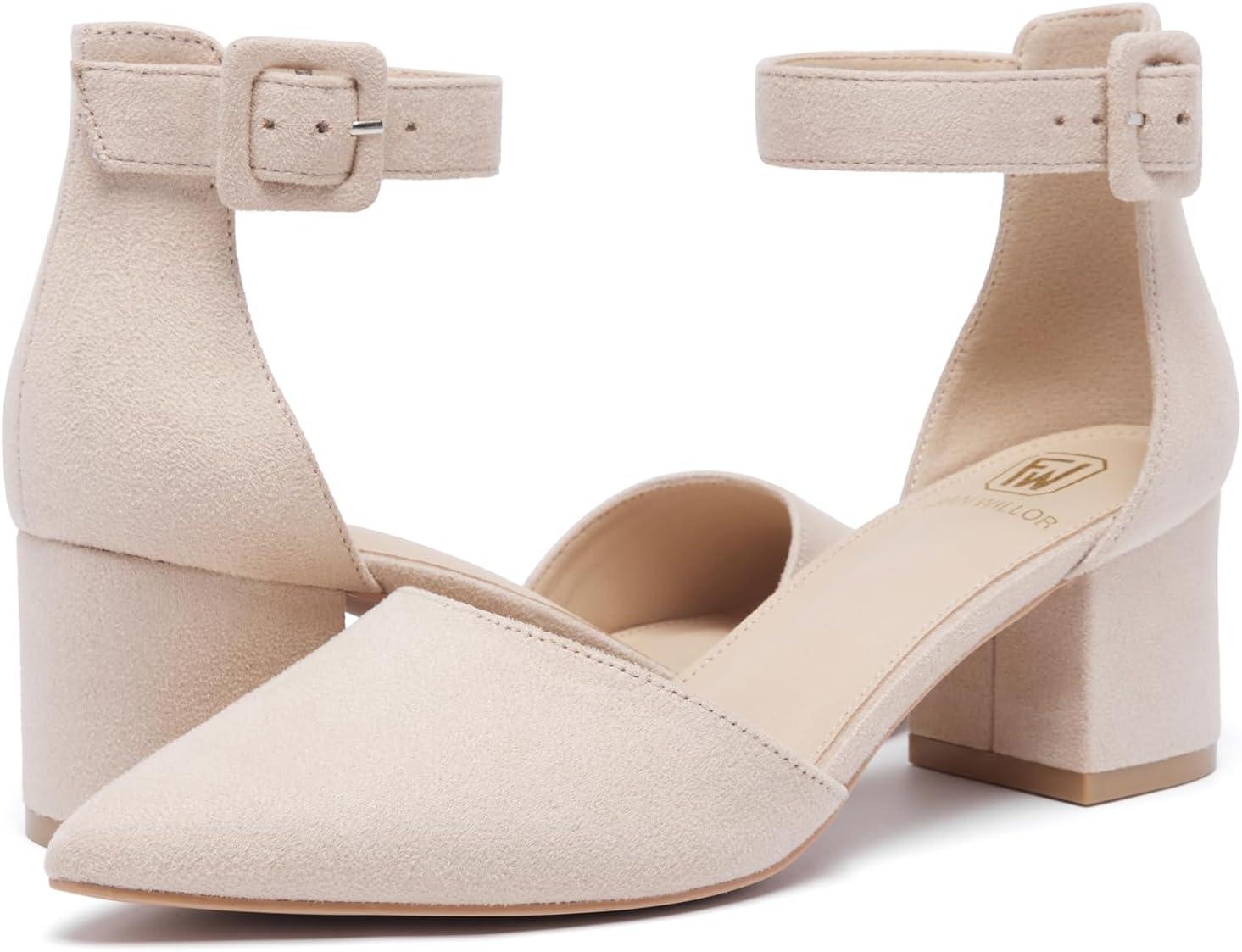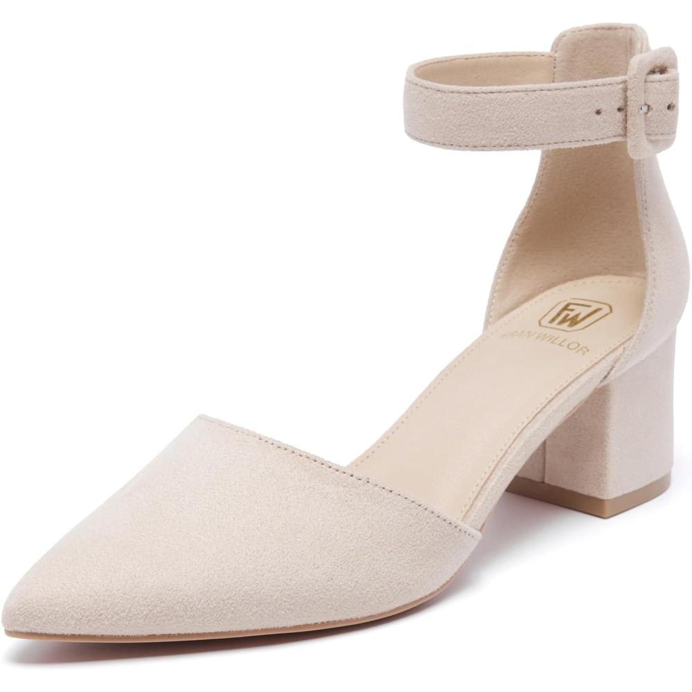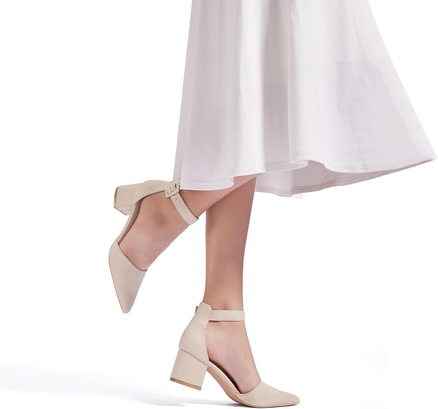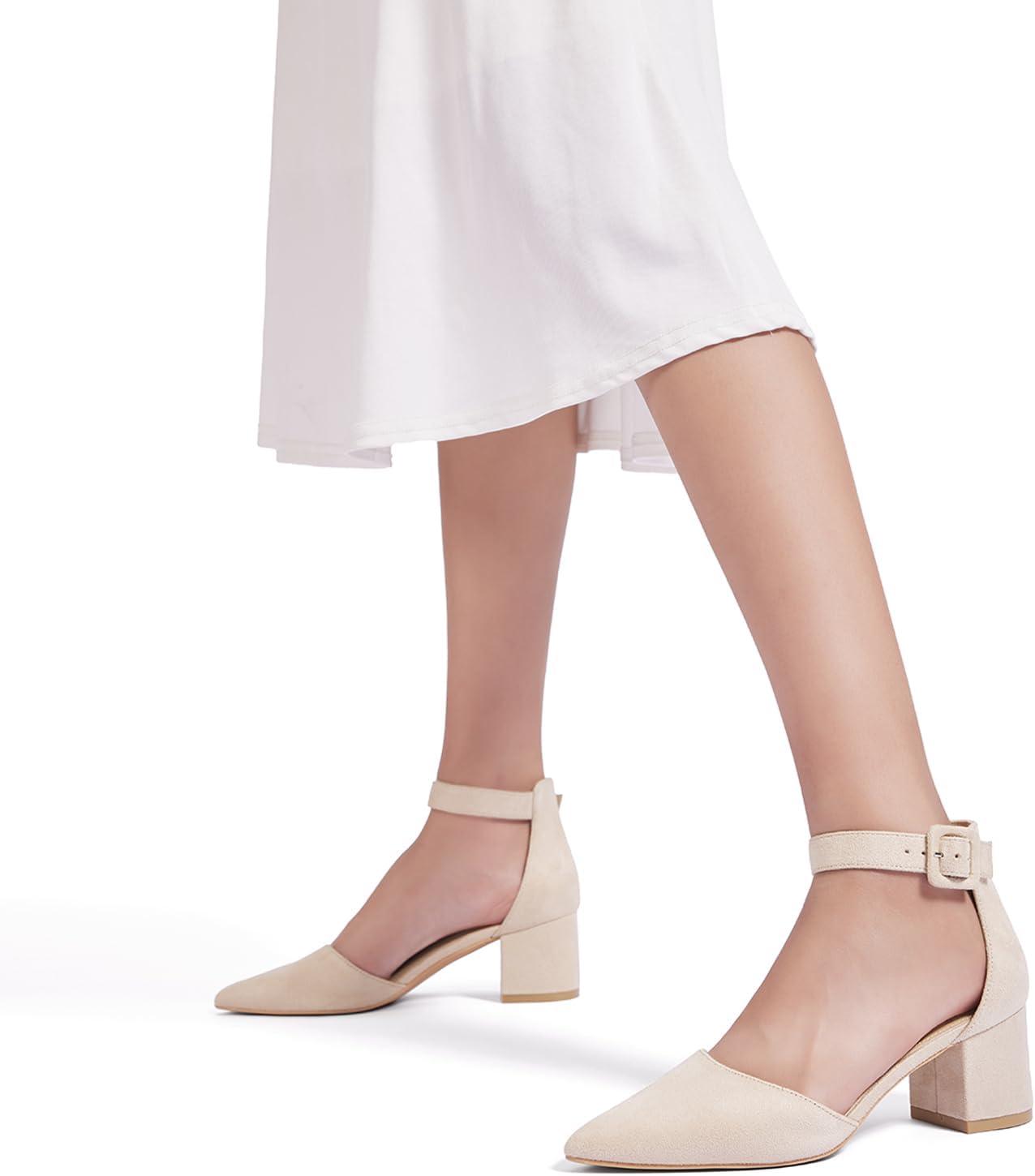 Women’s Closed Toe Heel Pumps Low Chunky Block Comfortable Dress Work Shoes(Nude 2.17inch)
