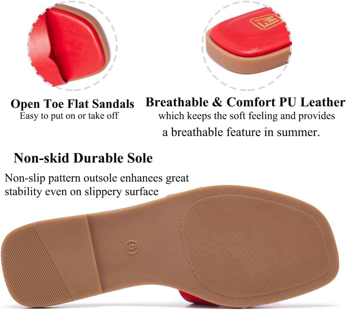 Don’t miss out on our limited-time offer: buy Women’s Flat Sandals Dressy Comfortable Slide Sandals Fashion Square Open Toe Slip On Beach Sandals for Summer(Red), get {accessory} free!
