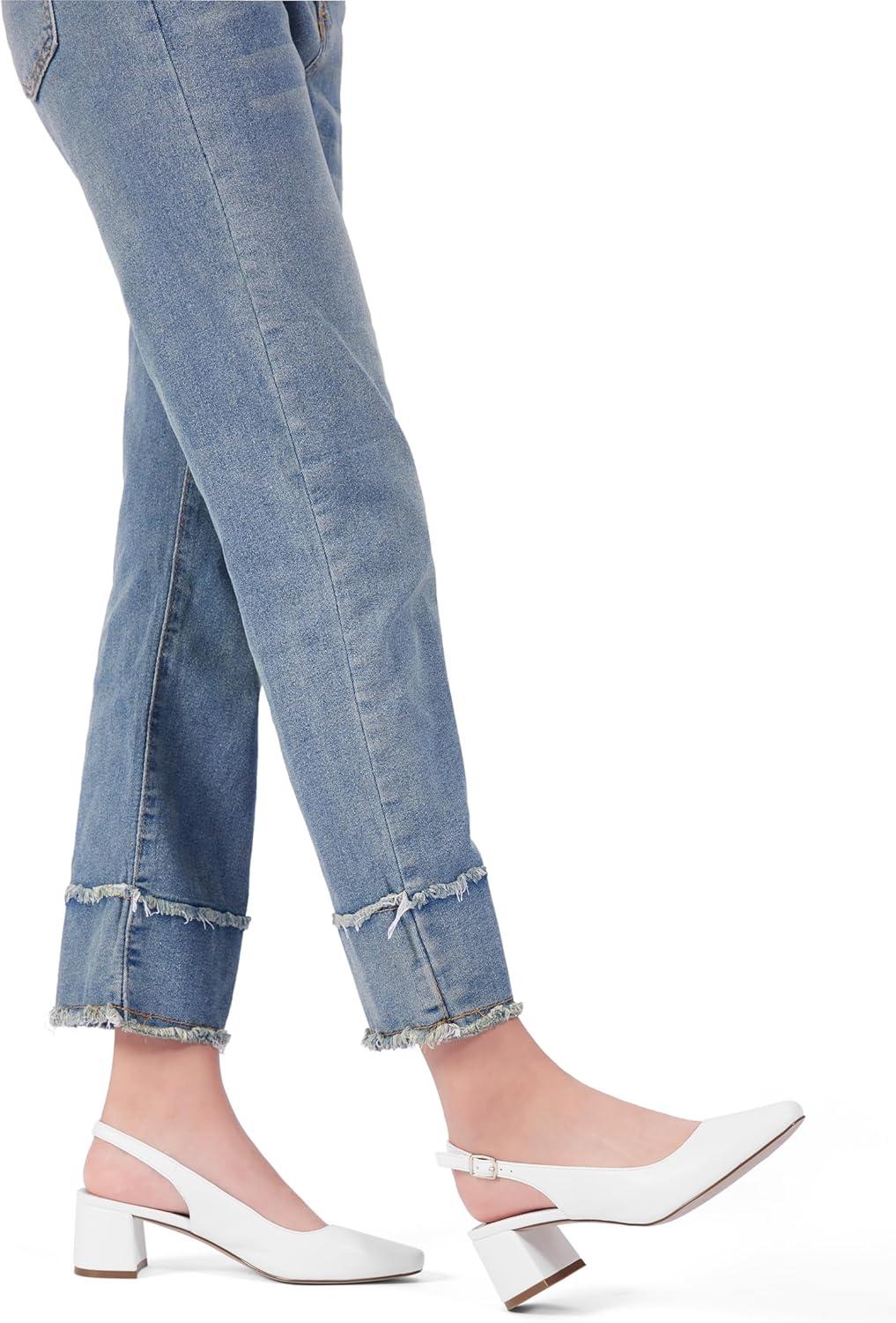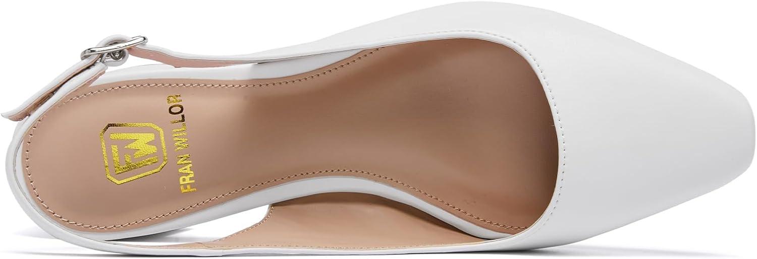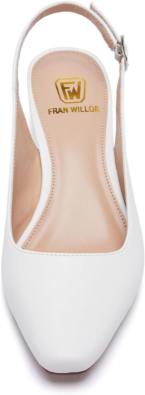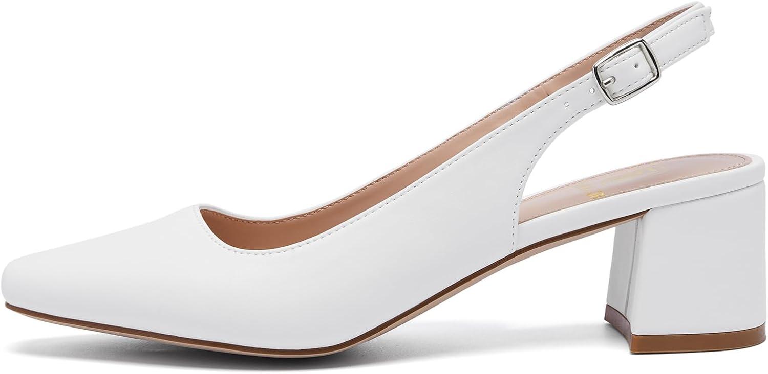 Women’s Low Chunky Slingback Heels Square Toe Block Dress Shoes Closed Toe Comfortable Wedding Office Work Pumps(White)