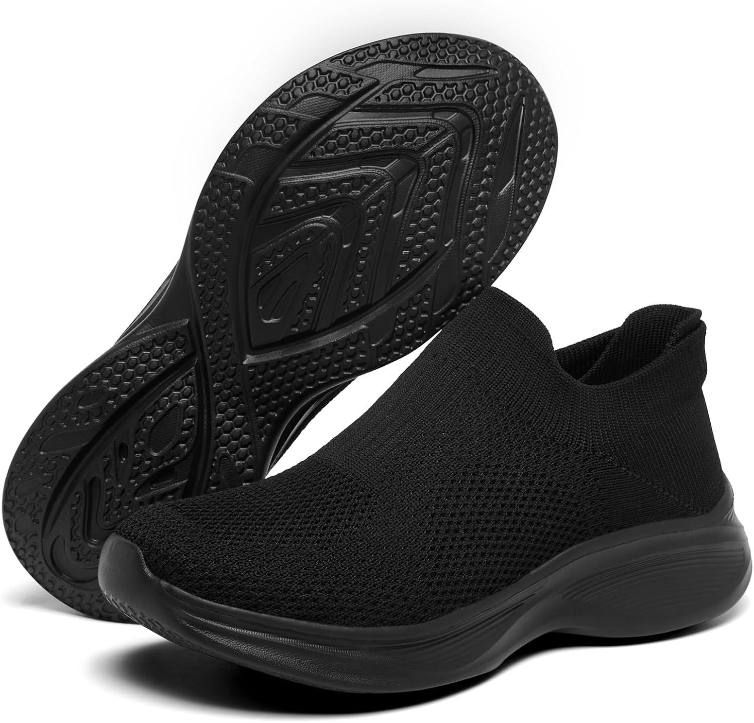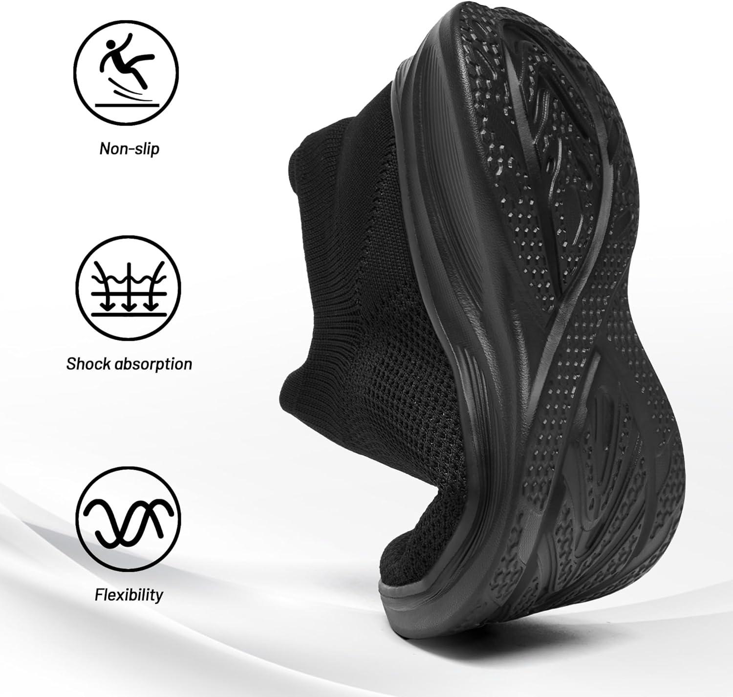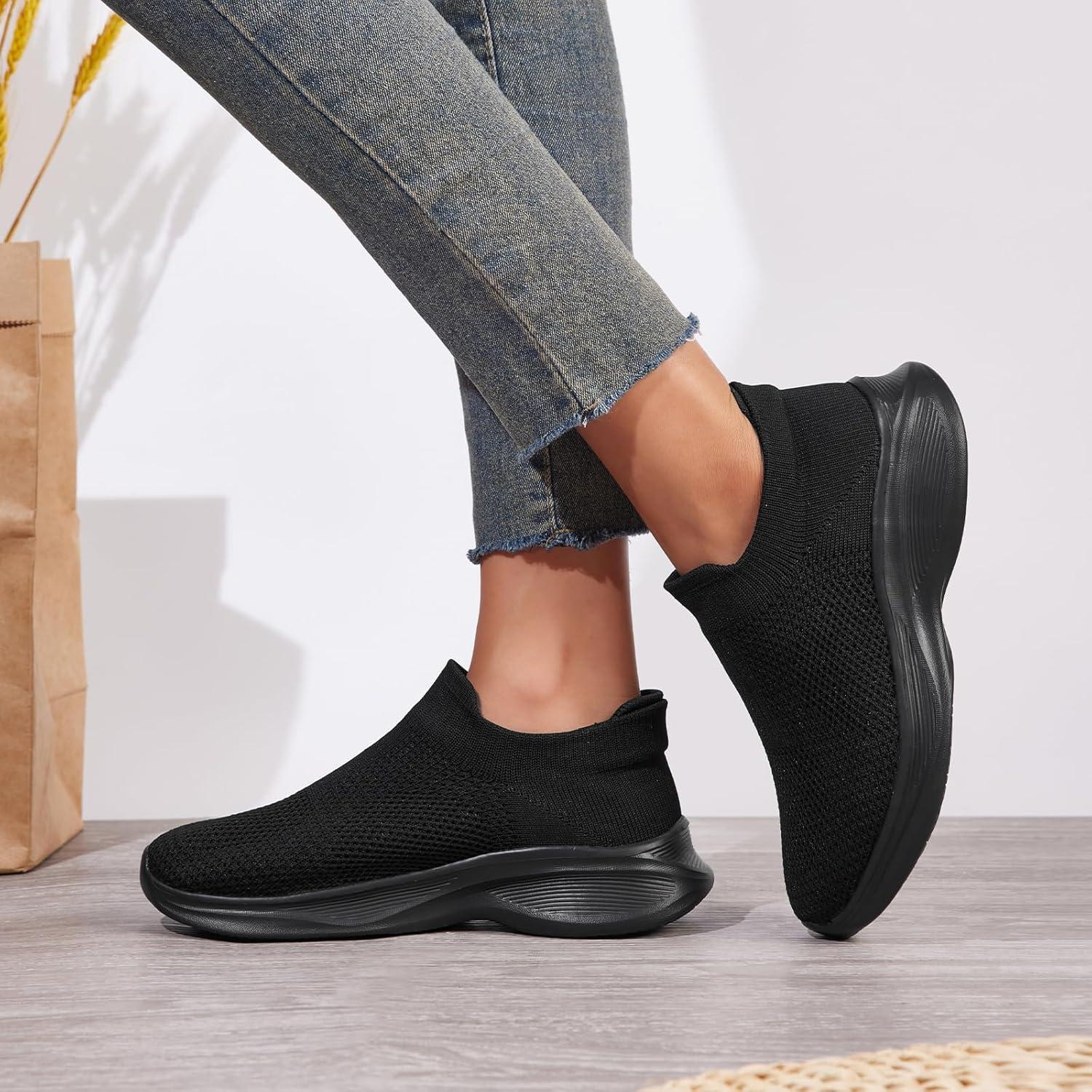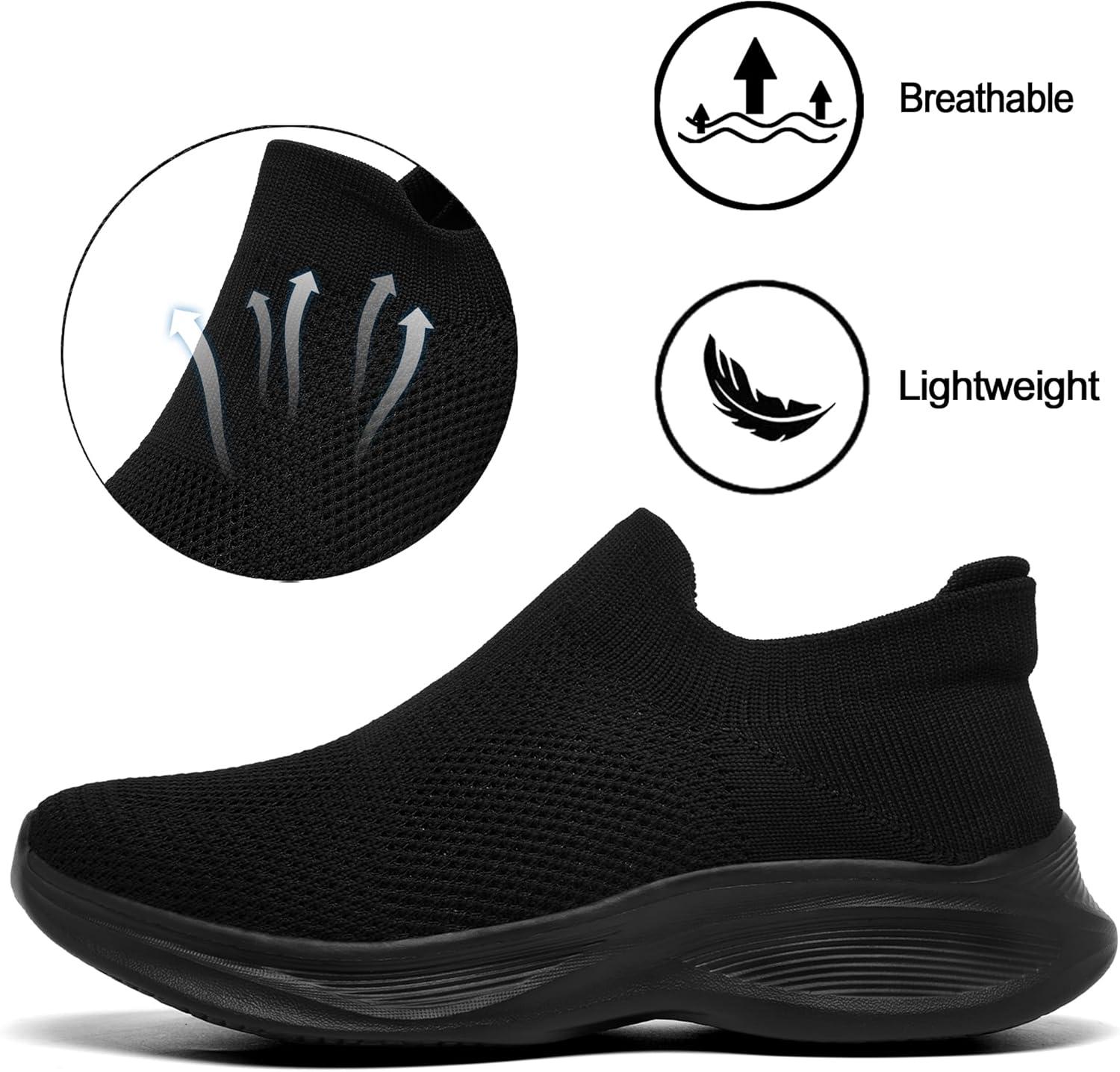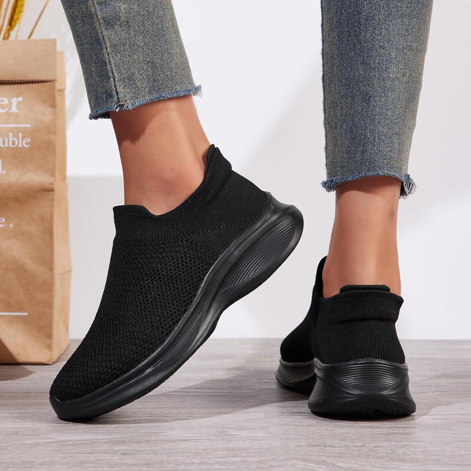 Women’s Slip on Walking Shoes Breathable Comfort Lightweight Sock Shoe Non Slip Work Shoes Fashion Running Tennis Sneakers(Black)
