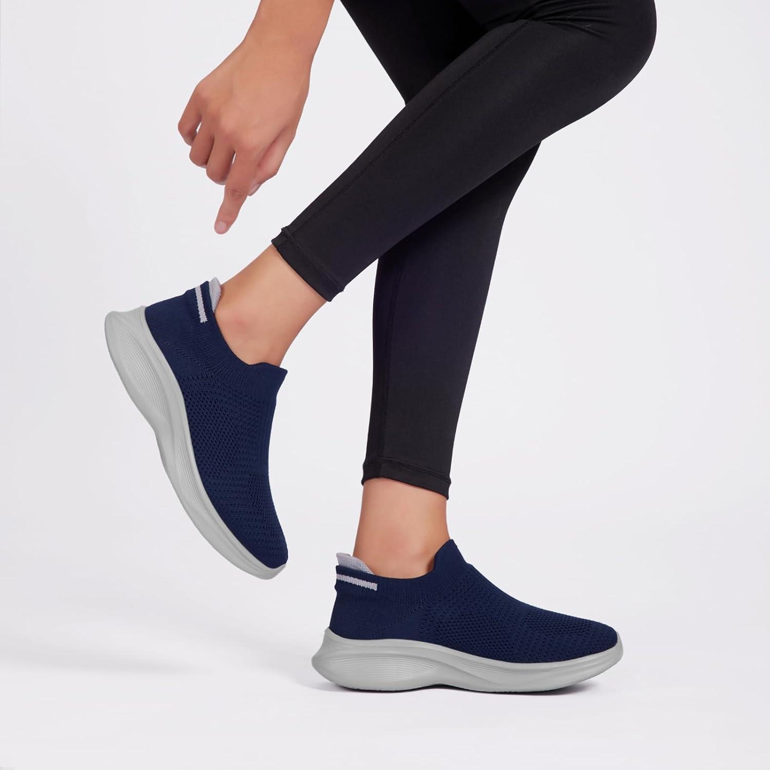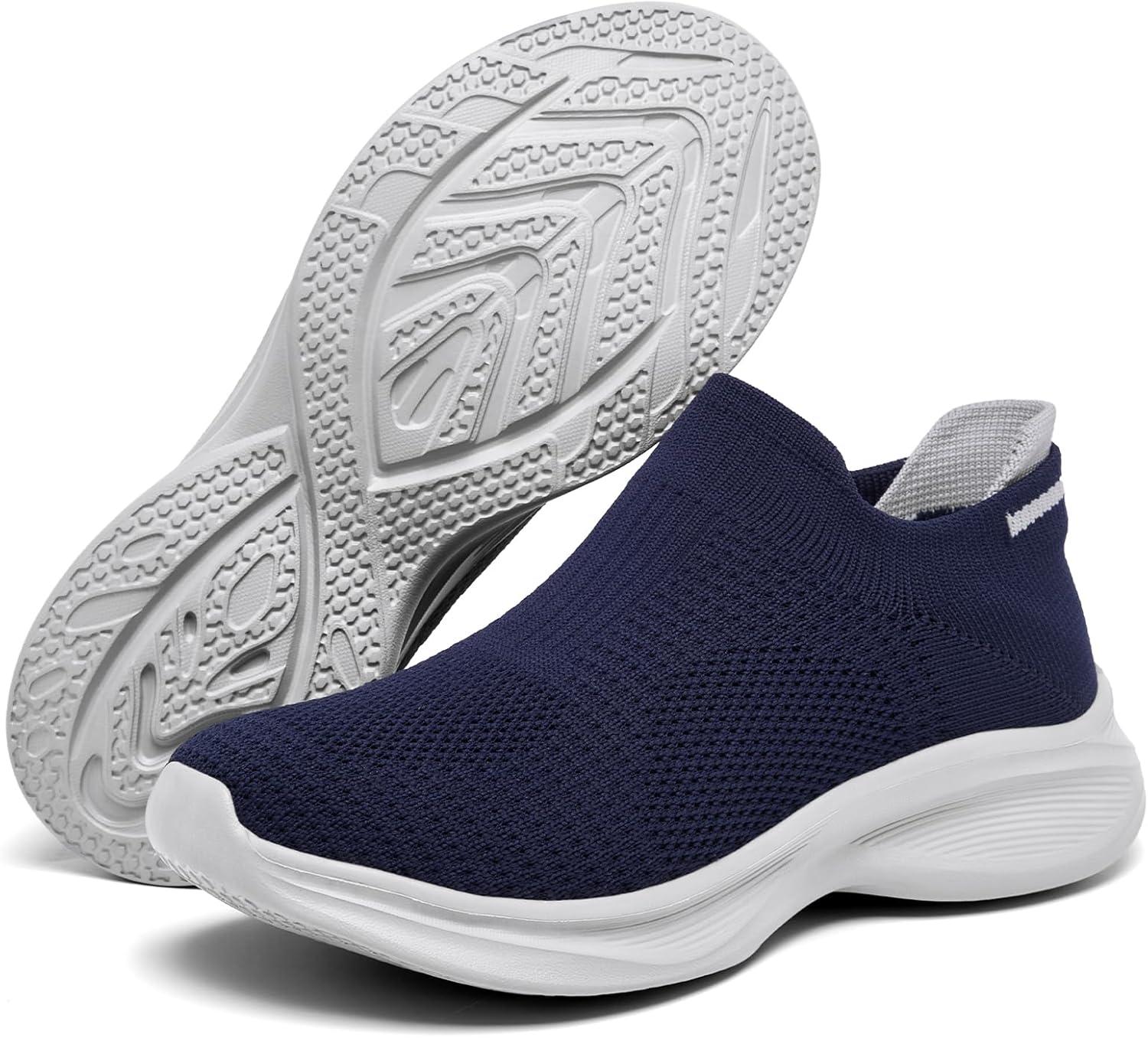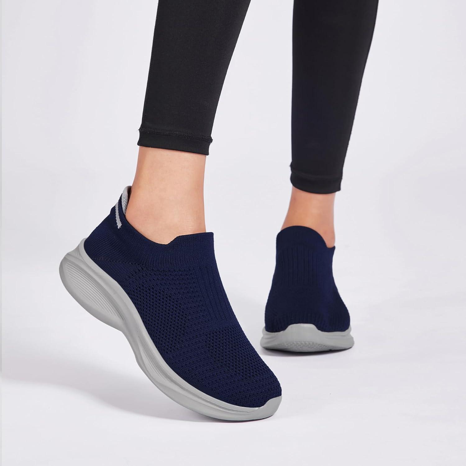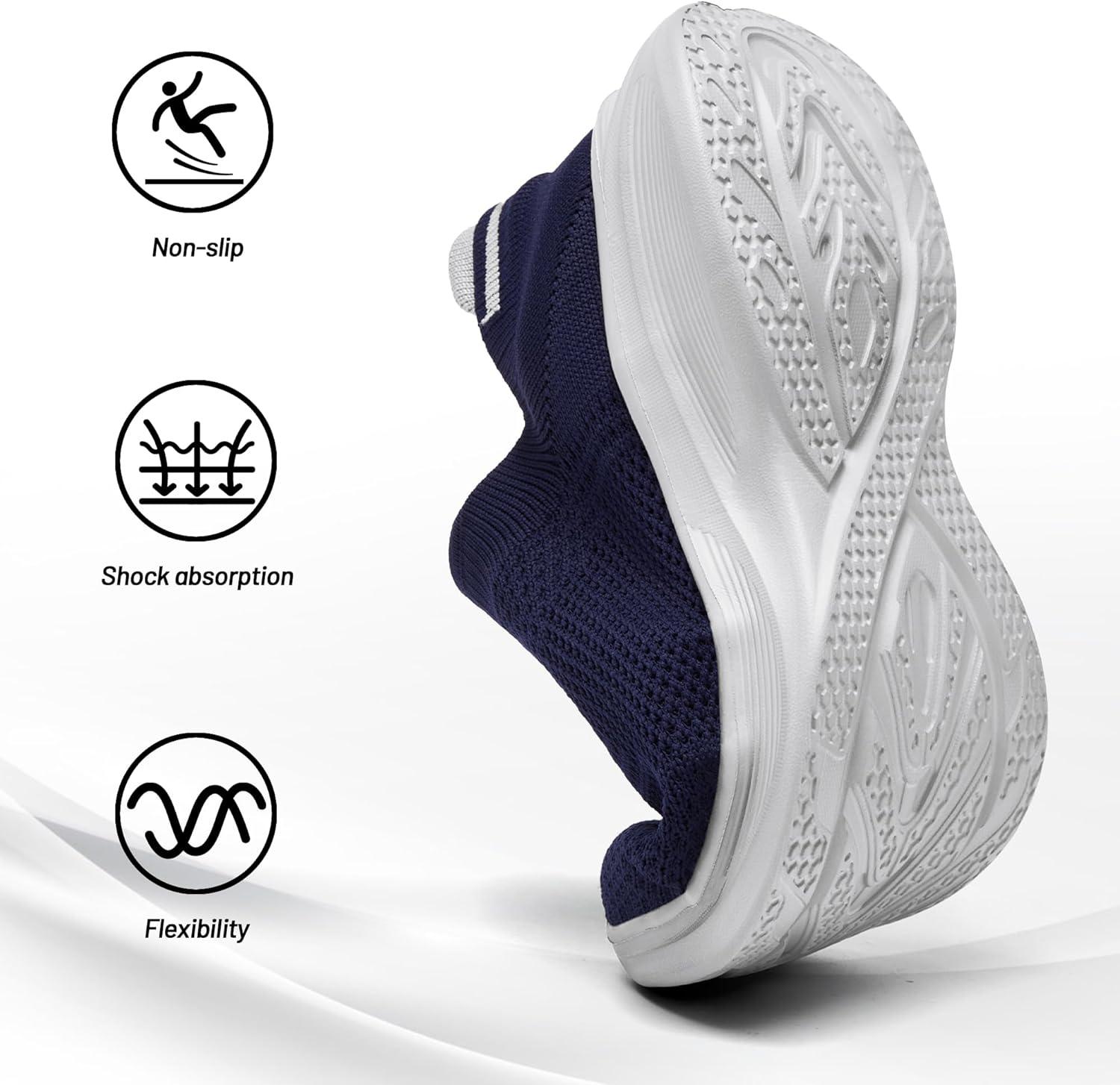 Women’s Slip on Walking Shoes Breathable Comfort Lightweight Sock Shoe Non Slip Work Shoes Fashion Running Tennis Sneakers(Navy Blue)