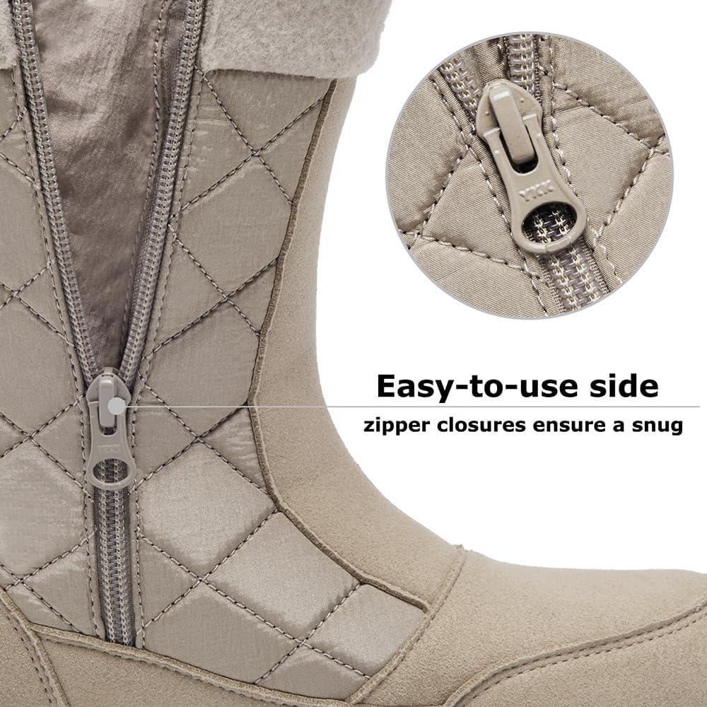 Women’s Waterproof Winter Snow Boots Warm Comfortable with Side Zipper – 2025 Fashion Lightweight Hiking boots for Cold Weather Insulated Mid Calf Military Booties(Beige)