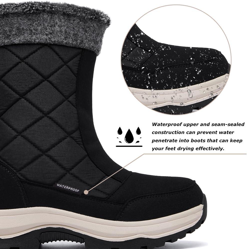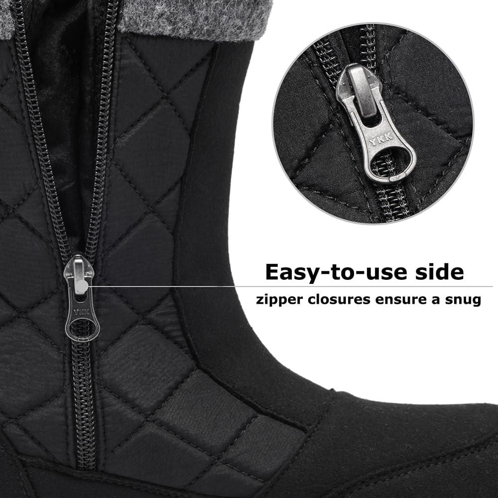 Women’s Waterproof Winter Snow Boots Warm Comfortable with Side Zipper – 2025 Fashion Lightweight Hiking boots for Cold Weather Insulated Mid Calf Military Booties(Black/White)