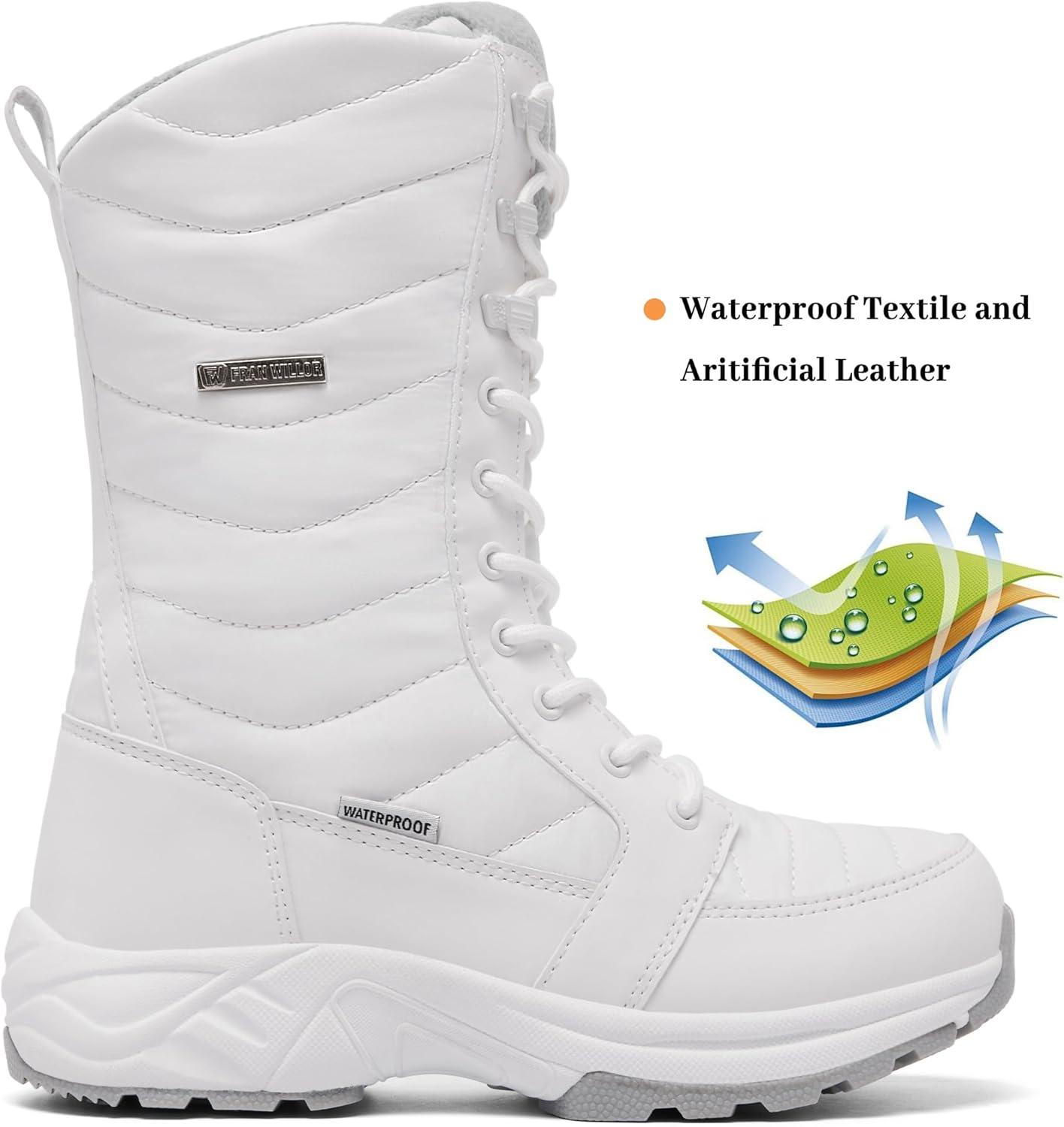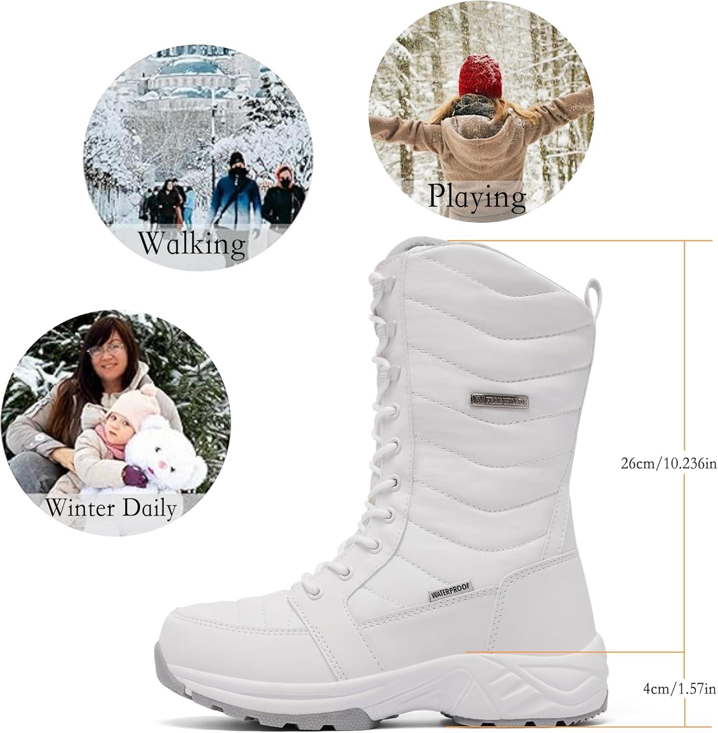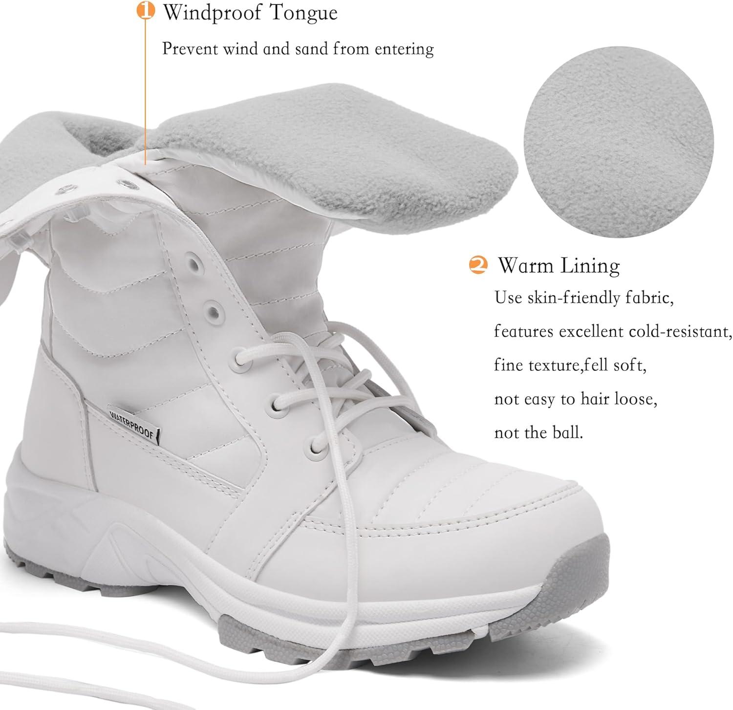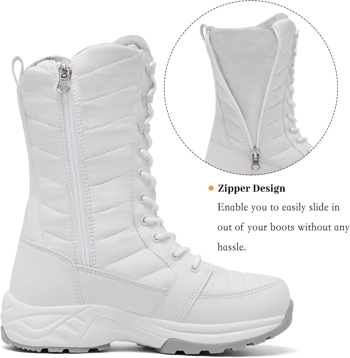 Women’s Waterproof Winter Snow Boots Warm Comfortable with Side Zipper – 2025 Fashion Lightweight Hiking boots for Cold Weather Insulated Mid Calf Military Booties(White)